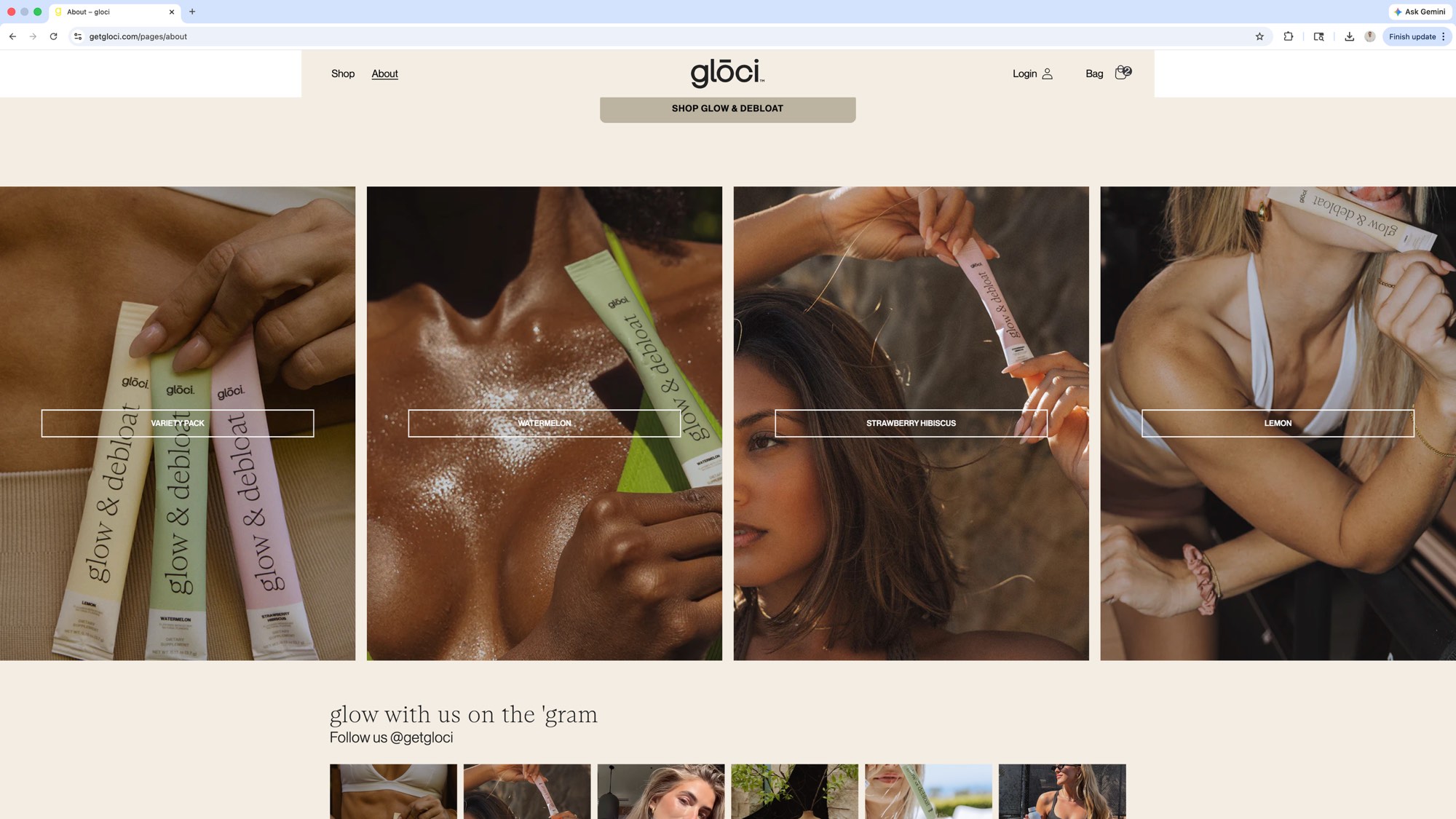 Full service brand build to design, build and launch the Glōci brand to the world. We handled their web experience development, photo and video launch assets, social marketing strategy and social brand launch.